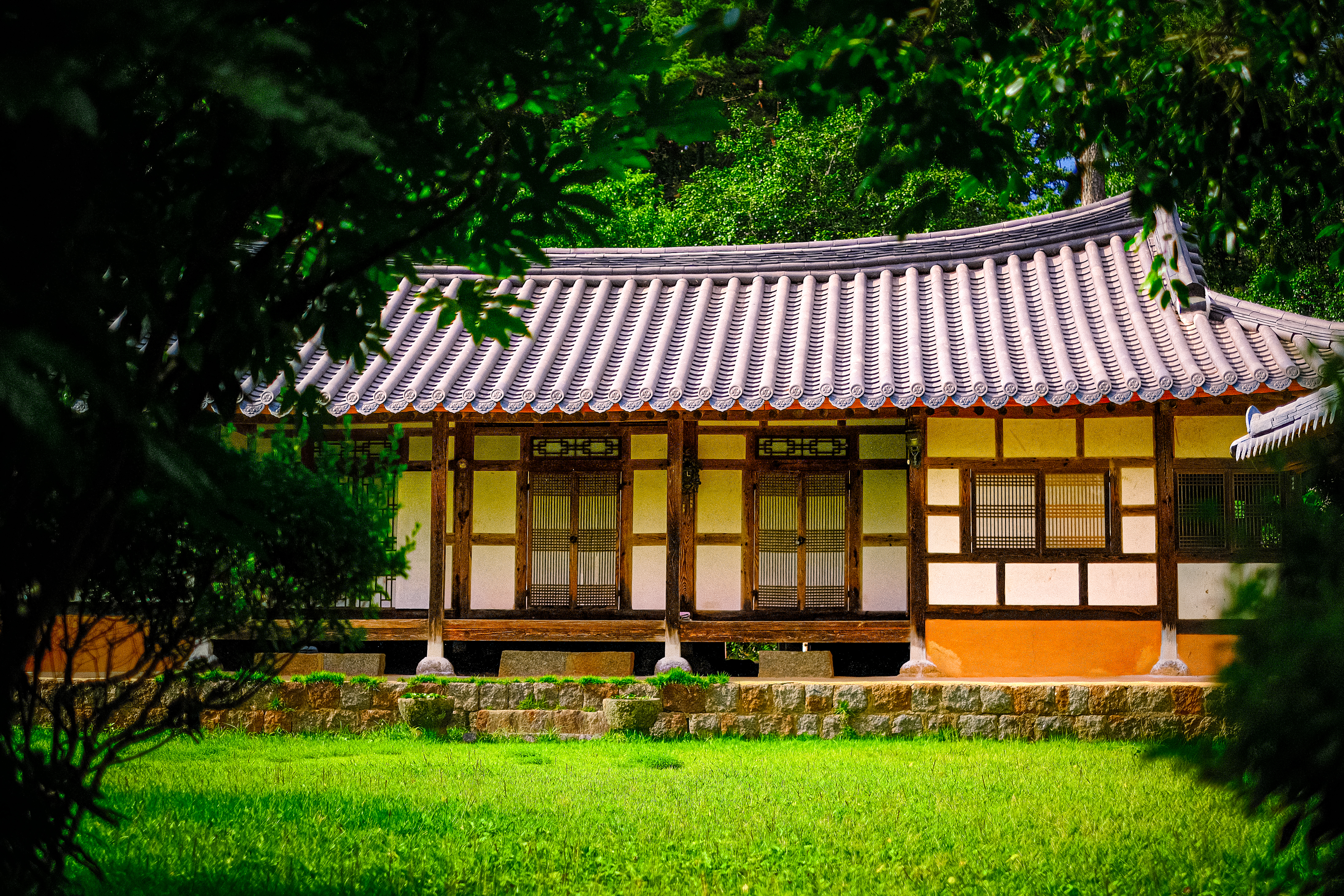 특히나 마당 너머로 펼쳐진 보성의 산자락과 논길, 그리고 자연과 조화를 이루는 한옥의 모습이 어우러져 정말 평화로운 풍경을 보여줍니다.