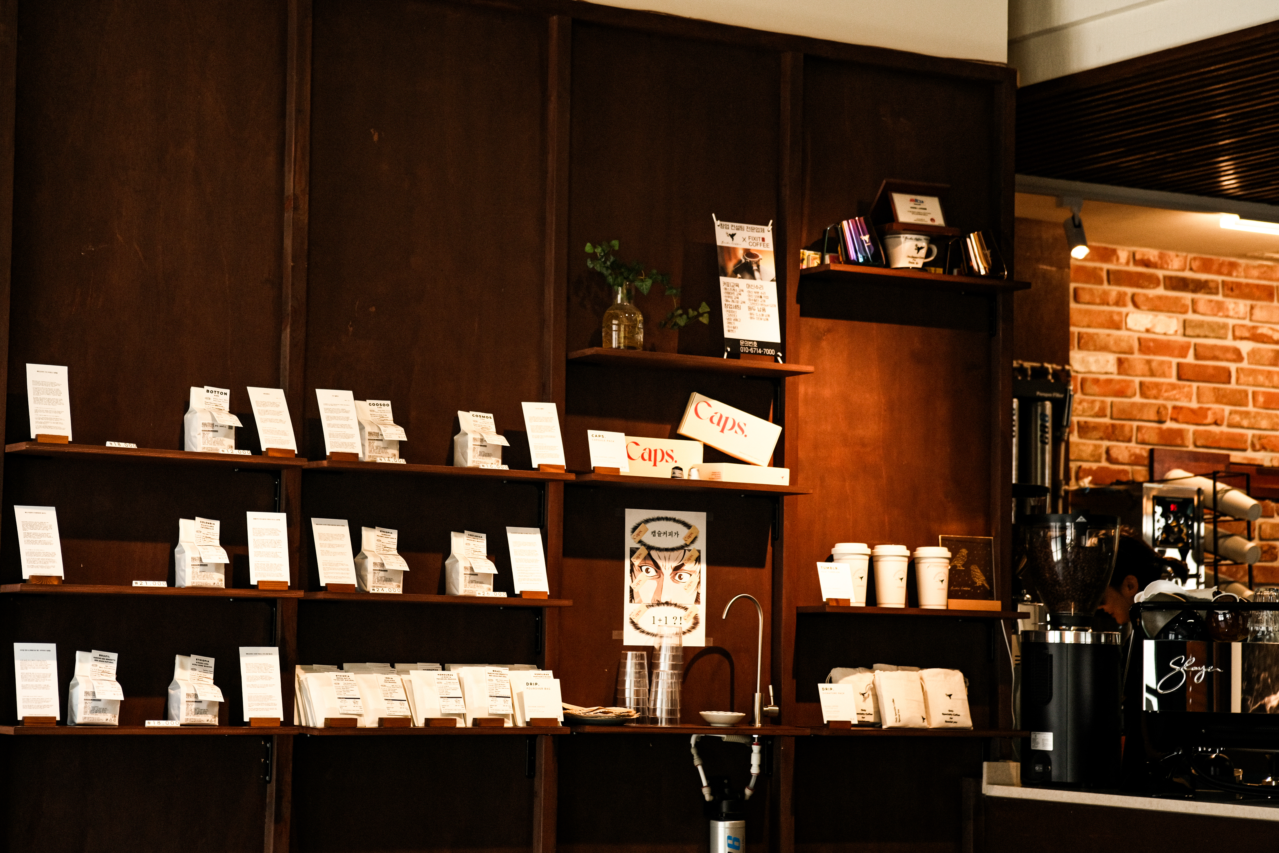 커피 머신, 그라인더, 필터 드립 커피 맛있는 커피를 추출하기 위해 좋은 머신들을 구비해둔 것과 노력하는 모습이 보였습니다.